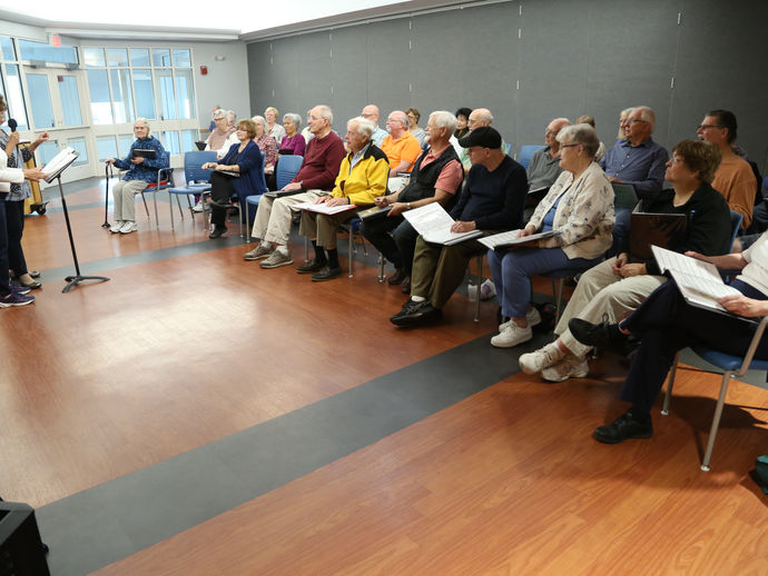 Camy Crick keeps the choir in tuneful and rhythmic shape